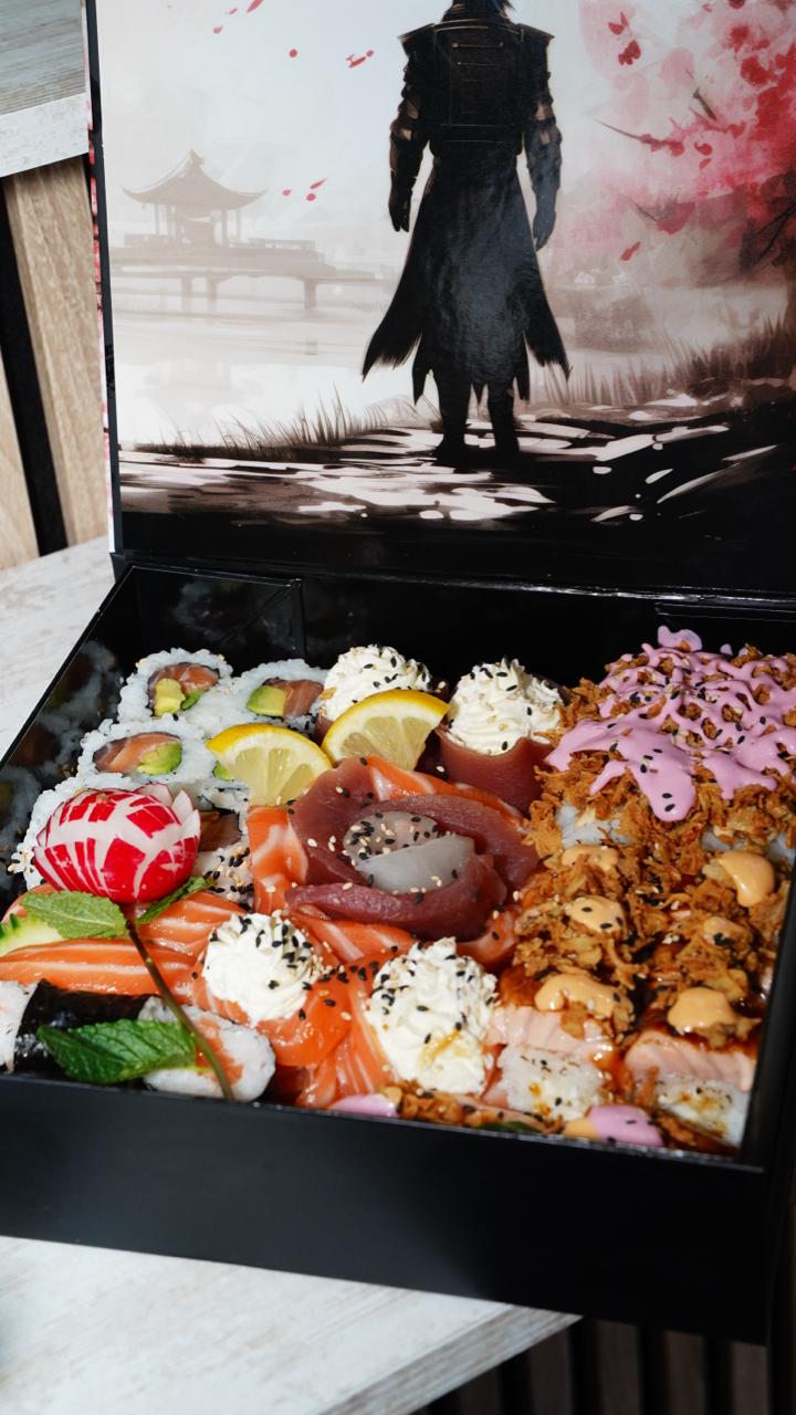 Découvrez la Box à Partager Hanami d’O’sushis Riom : un assortiment complet et raffiné composé de 2 sushis saumon, 2 sushis saumon snackés, 3 sashimis saumon, 3 sashimis thon, 3 sashimis daurade, 6 makis saumon, 6 crunchy saumon, 6 california rolls saumon snacké, 6 california saumon avocat, 2 gunkans saumon et 2 gunkans thon. Une box généreuse et équilibrée, parfaite pour 2 à 3 personnes, alliant fraîcheur, qualité et authenticité japonaise.